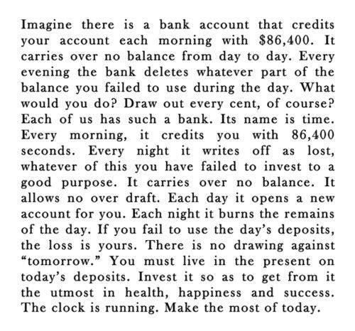 there is nothing worse than the feeling of a missed opportunity, time that's been misused, a day that's been wasted.